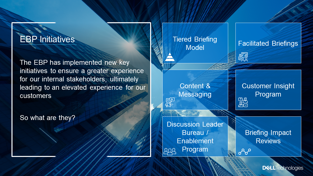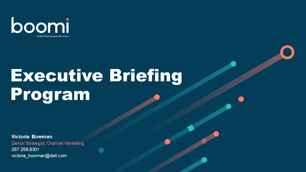 I led the Boomi program for leveraging the global Dell Executive Briefing Centers, first working within the program to coordinate onsite briefing sessions and later transitioning to a virtual briefing format due to restrictions. As the Senior Strategist for Channel Marketing, I built the bridge between Dell Tech and Boomi for this collaboration. Excerpts from the program overview are shown above.